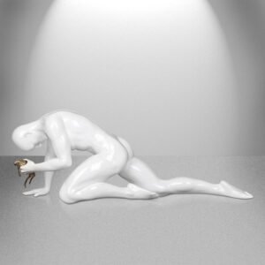 Figurative Skulptur aus lackiertem Kunstharz, erhältlich in verschiedenen Farben.