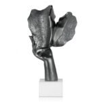 Moderne figurative Skulptur aus Kunstharz in Metalloptik mit Marmorsockel